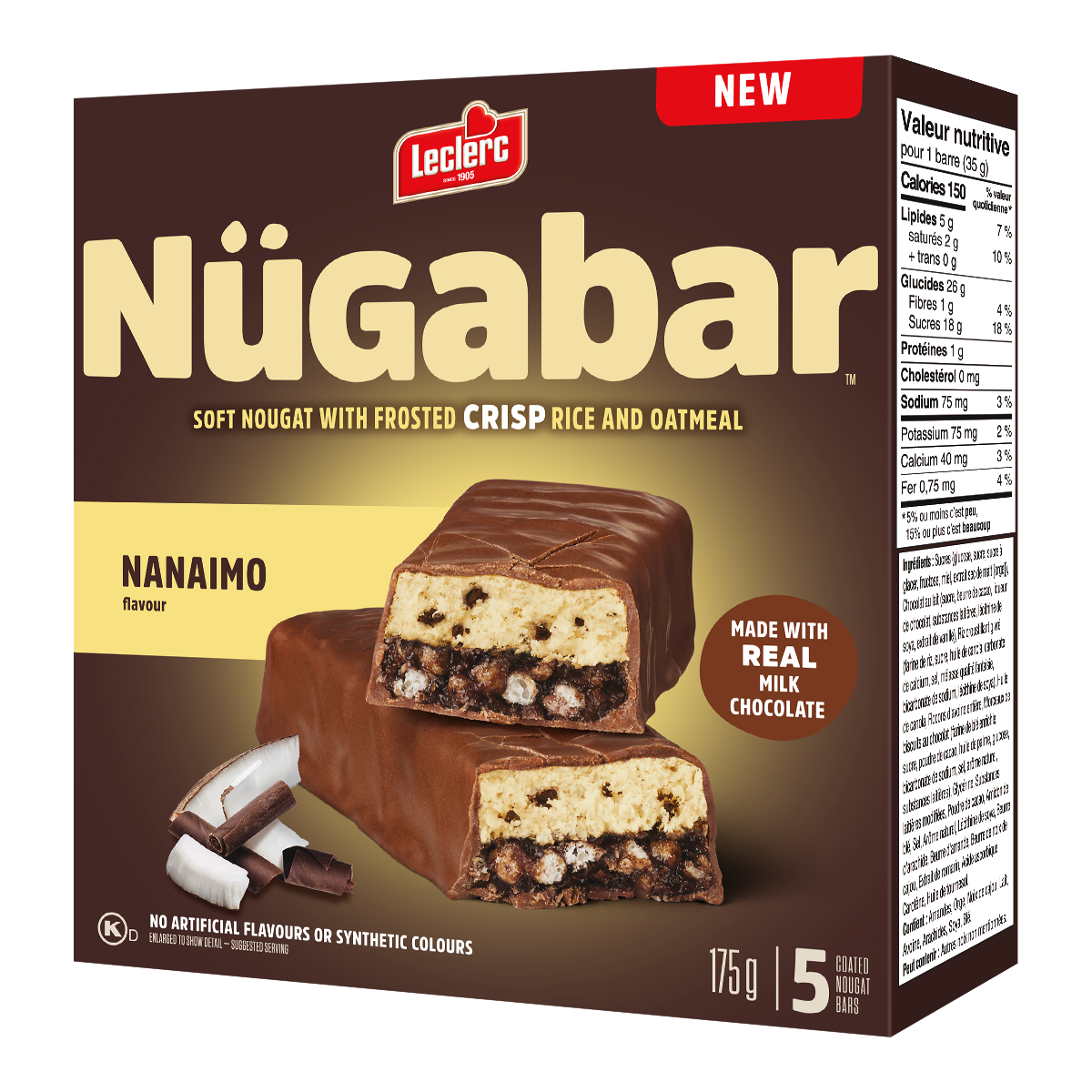 Sugars (glucose, sugar, icing sugar, fructose, honey, dry malt extract [barley]), Milk chocolate (sugar, cocoa butter, chocolate liquor, milk ingredients, soya lecithin, vanilla extract), Frosted crisp rice (rice flour, sugar, canola oil, calcium carbonate, salt, fancy molasses, sodium bicarbonate, soya lecithin), Canola oil, Whole rolled oats, Chocolate cookie crumbs (enriched wheat flour, sugar, cocoa powder, palm oil, glucose, sodium bicarbonate, salt, natural flavour, milk ingredients), Glycerin, Modified milk ingredients, Cocoa powder, Wheat starch, Natural flavour, Salt, Soya lecithin, Almond butter, Peanut butter, Cashew butter, Sunflower oil.