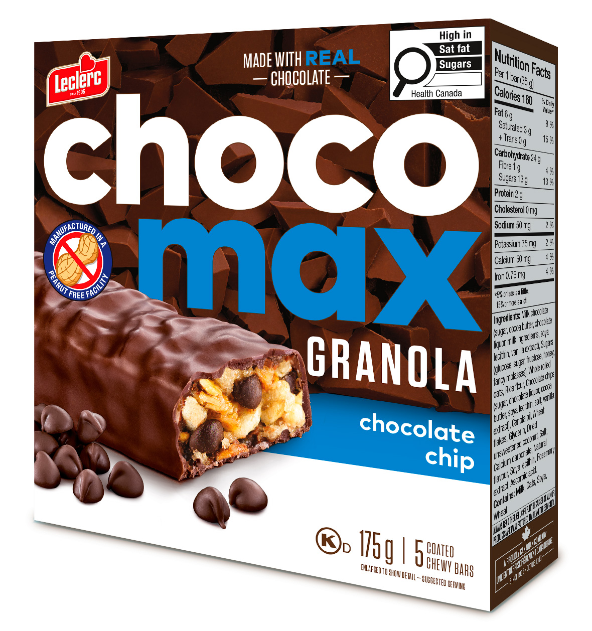Milk chocolate (sugar, cocoa butter, chocolate liquor, milk ingredients, soya lecithin, vanilla extract), Sugars (glucose, sugar, fructose, honey, fancy molasses), Whole rolled oats, Rice flour, Chocolate chips (sugar, chocolate liquor, cocoa butter, soya lecithin, salt, vanilla extract), Graham cookies crumbs (enriched wheat flour, sugar, graham flour, canola oil, fancy molasses, honey, salt, baking powder, sodium bicarbonate, soya lecithin, natural flavour, modified milk ingredients), Dehydrated marshmallow (sugar, glucose, modified corn starch, gelatin, natural flavour), Canola oil, Glycerin, Wheat flakes, Dried unsweetened coconut, Natural flavour, Salt, Calcium carbonate, Soya lecithin, Rosemary extract, Ascorbic acid.