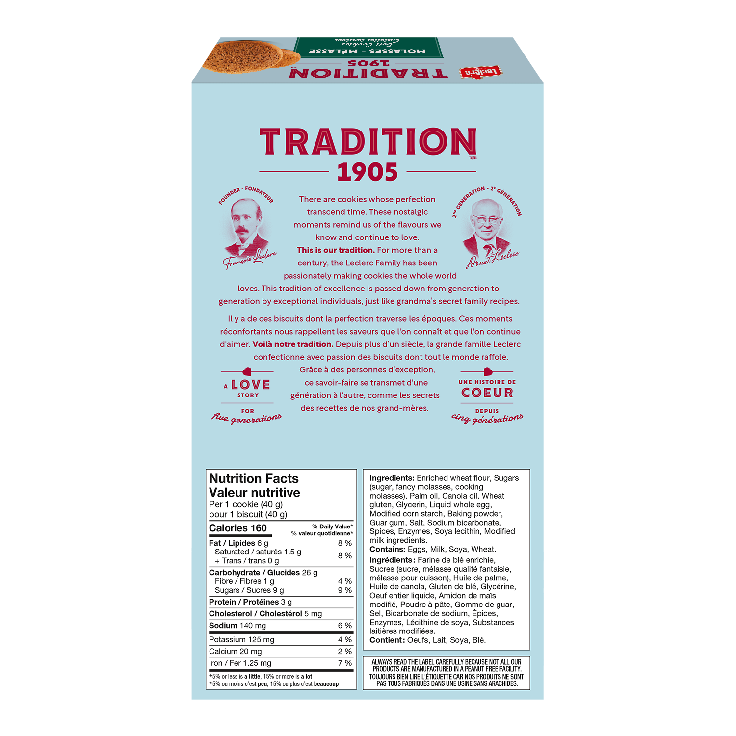 Enriched wheat flour • Sugars (sugar, fancy molasses, cooking molasses) • Palm oil • Canola oil • Wheat gluten • Glycerin • Liquid whole egg • Modified corn starch • Baking powder • Guar gum • Salt • Sodium bicarbonate • Spices • Enzymes • Soya lecithin • Modified milk ingredients