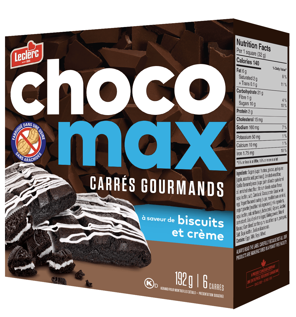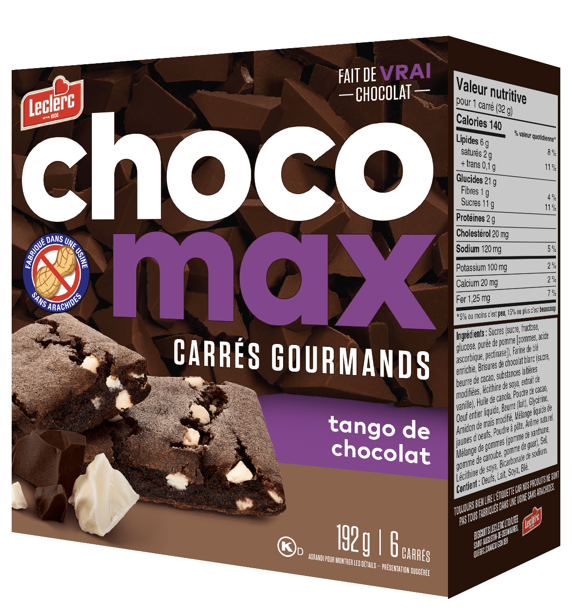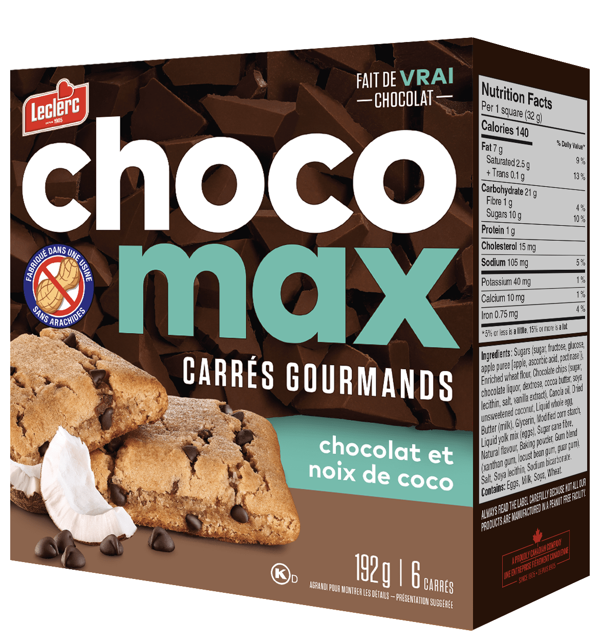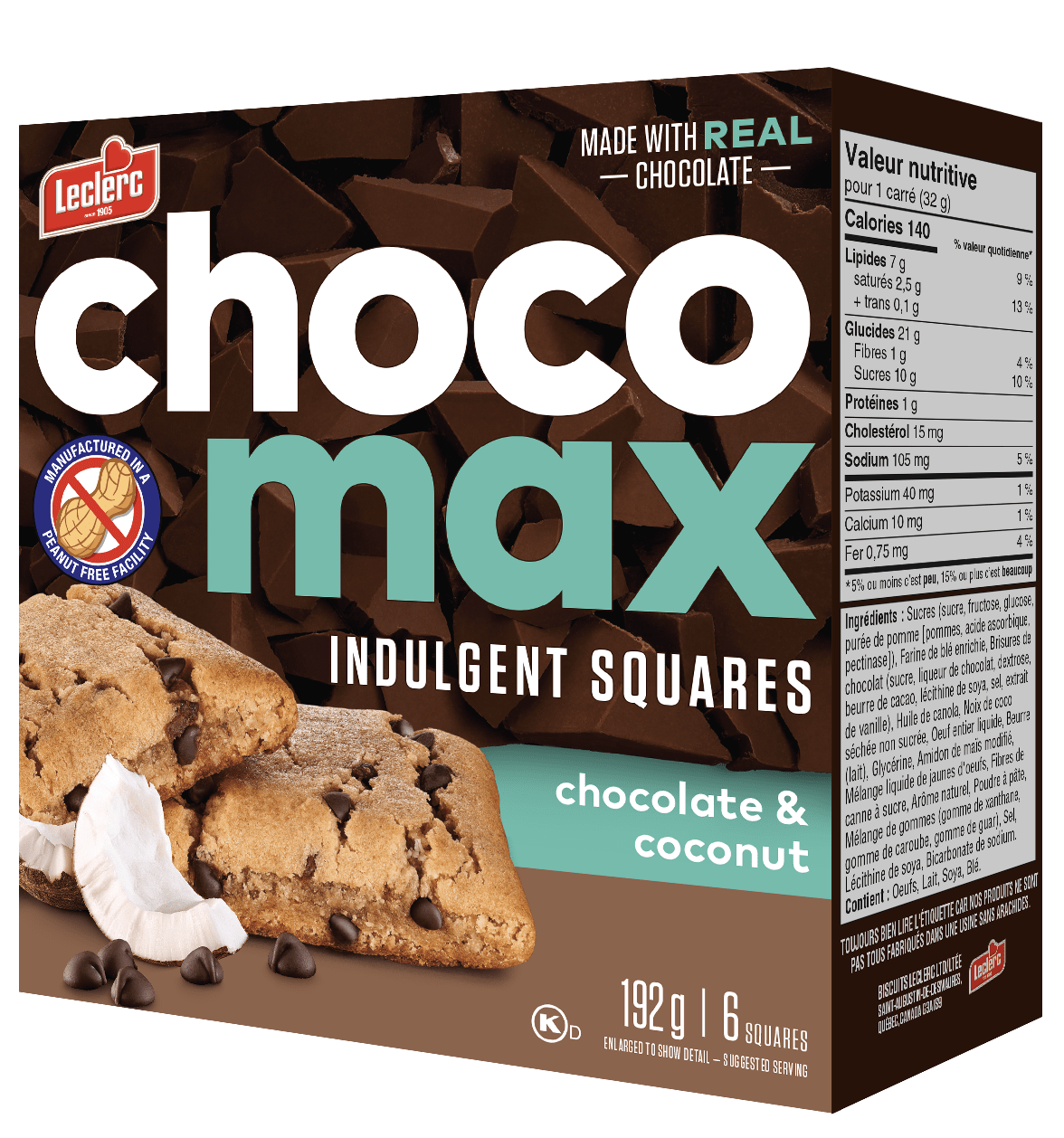 Une texture moelleuse irrésistible qui saura plaire à votre palais. On les aime pour leur goût chocolat et noix de coco… mais aussi pour leur portabilité (6 sachets par boîte). En plus, c’est la collation parfaite pour la boîte à lunch car ces produits sont certifiés sans arachides.