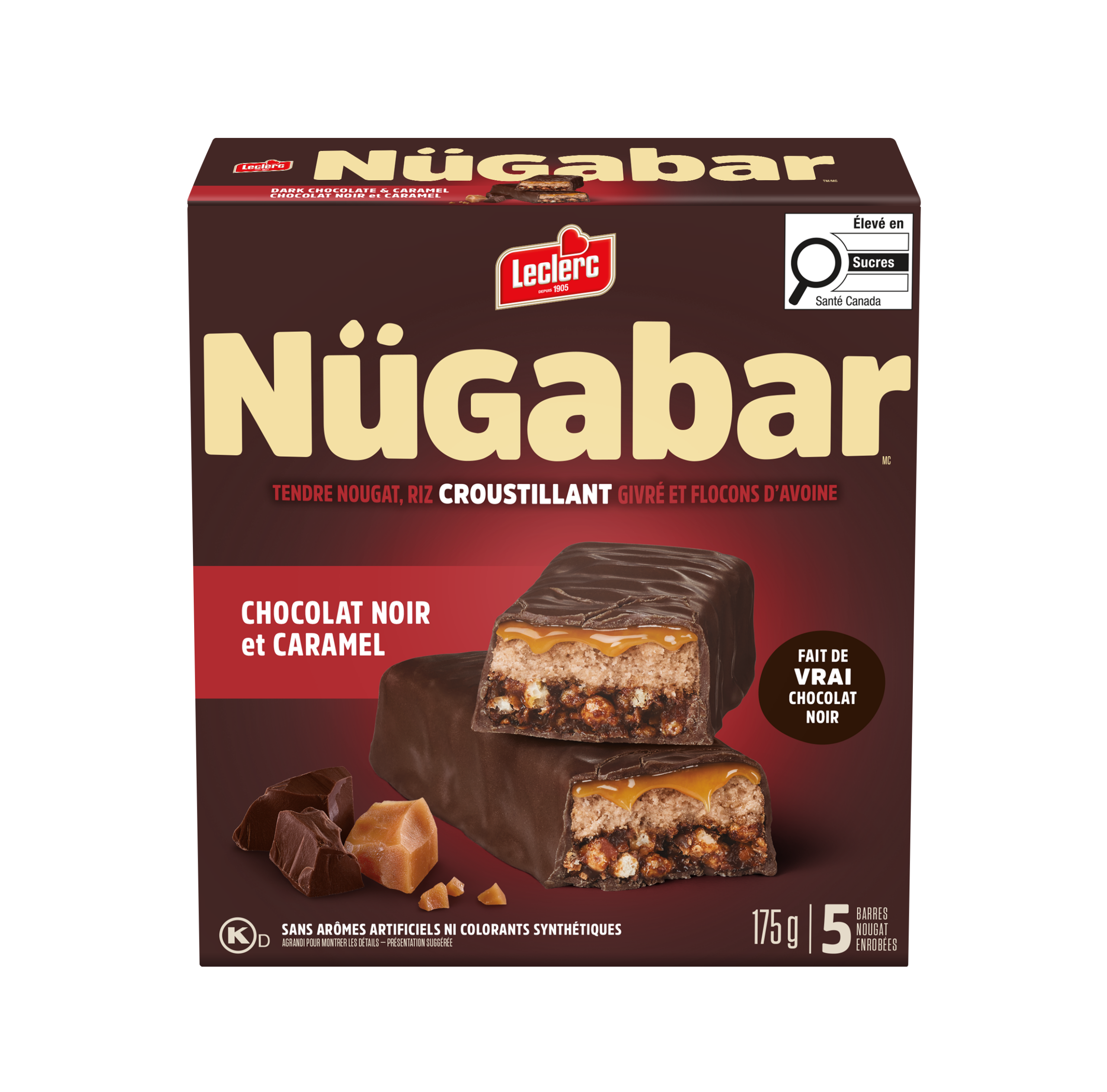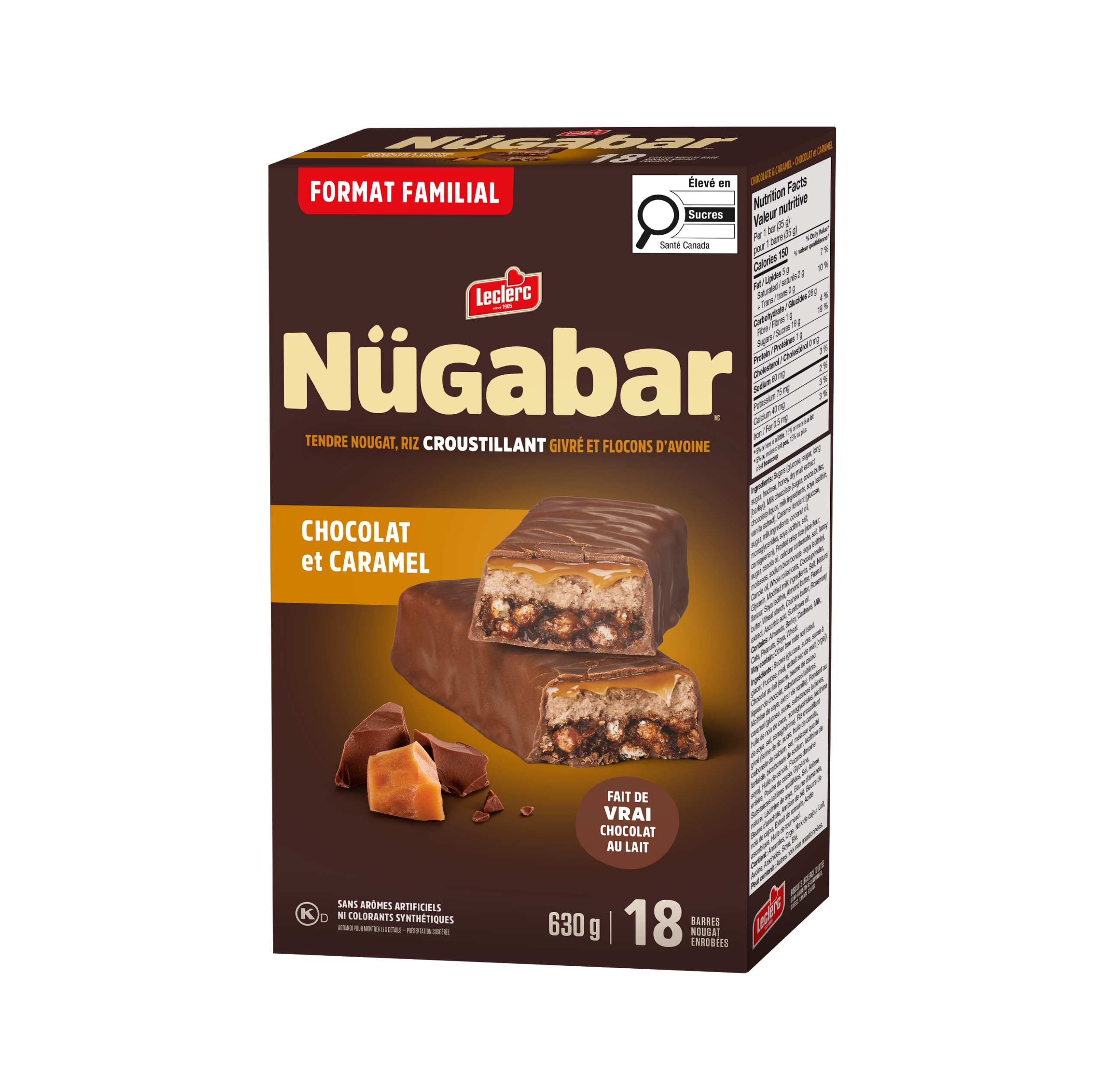 Sucres (glucose, sucre, sucre à glacer, fructose, miel, extrait sec de malt [orge]), Chocolat au lait (sucre, beurre de cacao, liqueur de chocolat, substances laitières, lécithine de soya, extrait de vanille), Riz croustillant givré (farine de riz, sucre, huile de canola, carbonate de calcium, sel, mélasse qualité fantaisie, bicarbonate de sodium, lécithine de soya), Fondant chocolaté au fudge (sucre, glucose, huile de noix de coco, poudre de cacao, substances laitières modifiées, eau, monoglycérides, lécithine de soya, extrait de vanille), Flocons d'avoine entière, Huile de canola, Glycérine, Poudre de cacao, Substances laitières modifiées, Amidon de blé, Arôme naturel, Sel, Lécithine de soya, Rouge de betterave, Beurre d'amande, Beurre d'arachide, Beurre de noix de cajou, Extrait de romarin, Acide ascorbique, Huile de tournesol.